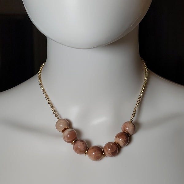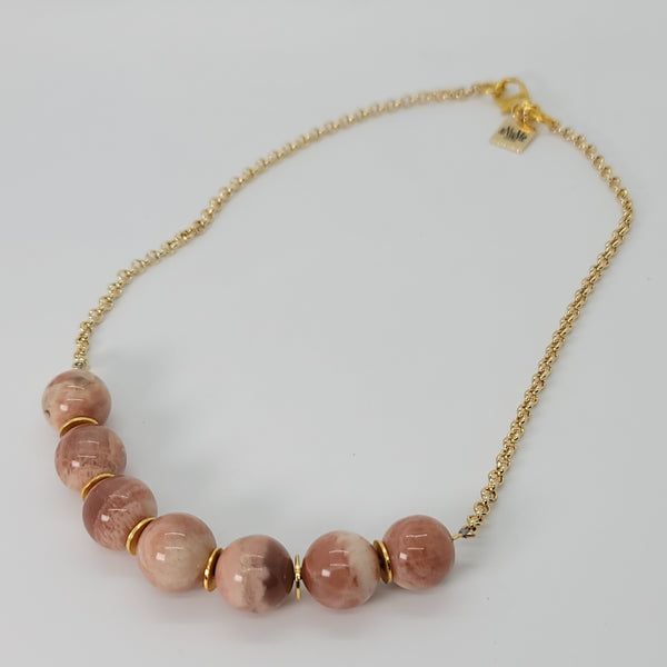 Rose quarter beads on a gold tone chain link choker. Layer or wear alone to create a look that's sure to get noticed.